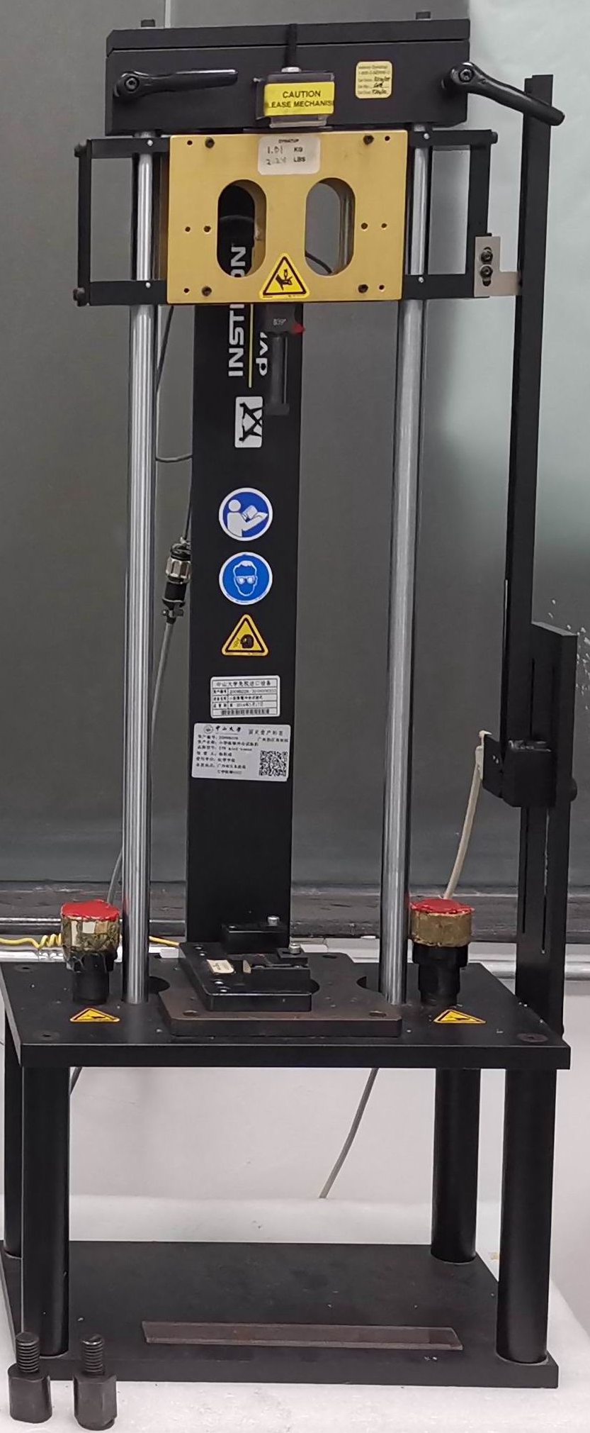 | 主要参数 0.7-18J1. 冲击能量:0.7-18.0J; 2. 冲头最大速度:3.0m/s; 3. 冲头最大降落高度:400-500mm; 4. 落锤质量:1.1-4.0 Kg。 |