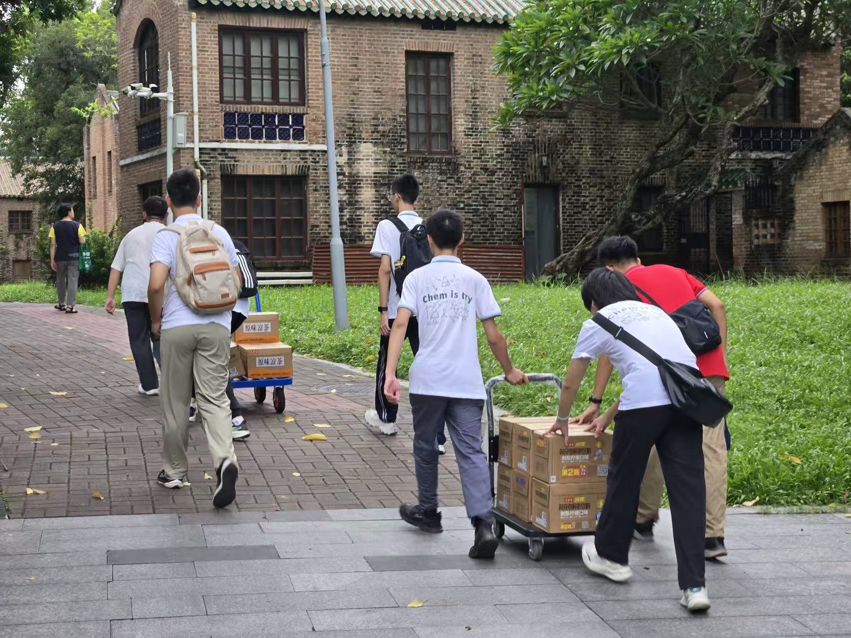 军训期间,学院特别组织了两场“清凉送关怀”活动。学院党委冯双书记、谭海燕副书记、辅导员老师和学长学姐们为训练场上的化院学子准备了清凉解暑的饮品。冯双勉励大家要发扬吃苦耐劳的精神,以饱满的热情完成军训任务,在训练中磨练意志品质。一杯杯清凉饮品不仅驱散了暑气,更传递了化院大家庭的浓浓情谊。
