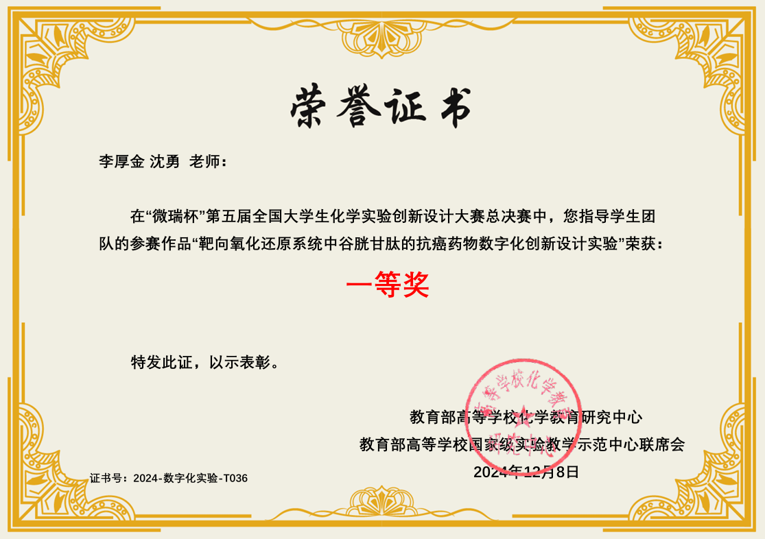 导航痕迹 5g影院 化学国家级实验教学示范中心 化学竞赛 “微瑞杯”第五届 (2024年和2025年) 全国大学生创新实验设计竞赛 5g影院 -数字化实验-总决赛一等奖 扫描此二维码分享 5g影院 -数字化实验-总决赛一等奖 发布人:网站管理员 发布日期:2025-10-09 靶向氧化还原系统中谷胱甘肽的抗癌药物的数字化创新设计实验