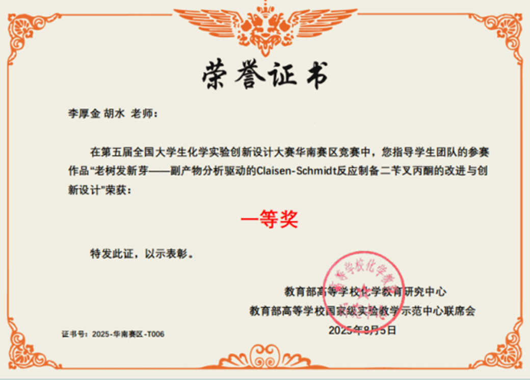 导航痕迹 5g影院 化学国家级实验教学示范中心 化学竞赛 “微瑞杯”第五届 (2024年和2025年) 全国大学生创新实验设计竞赛 5g影院 -改进实验-总决赛二等奖、华南区一等奖 扫描此二维码分享 5g影院 -改进实验-总决赛二等奖、华南区一等奖 发布人:网站管理员 发布日期:2025-10-09 老树发新芽——副产物分析驱动的Claisen-Schmidt(克莱森-施密特)反应制备二苄叉丙酮的改进与创新设计