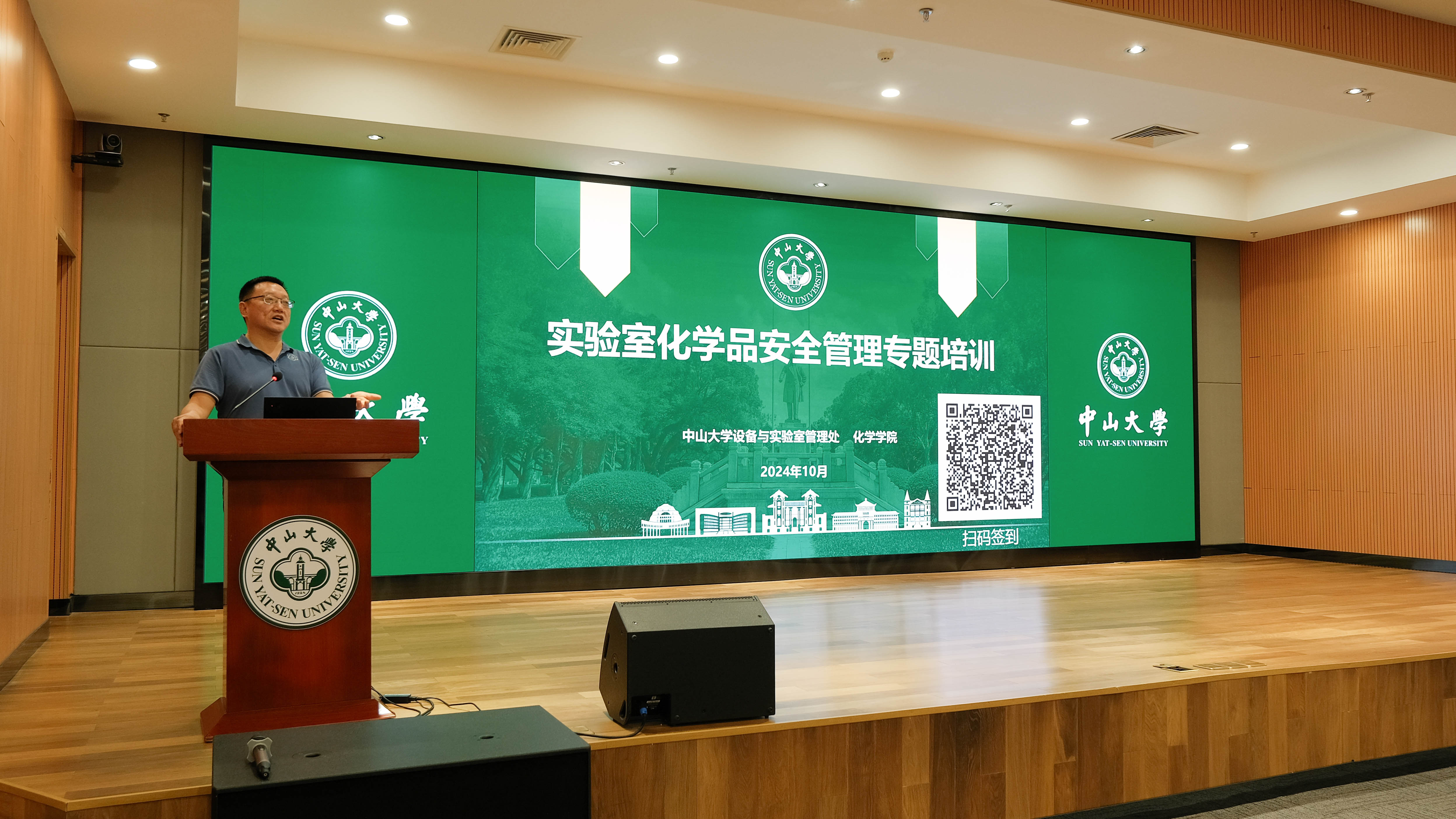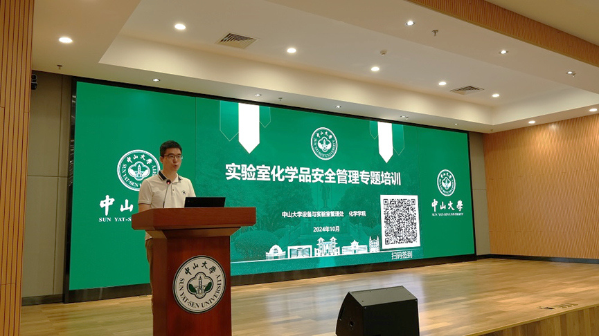 设备与实验室管理处郑仕勇副处长开场致辞,他强调,在百年校庆来临之际,要做好实验室安全管理工作,尤其是实验室化学品安全管理,这不仅是对党的二十大精神和二十届三中全会会议精神的深入贯彻和实践,更是对我们校园安全的责任与担当。他结合近年来高校发生的实验室安全事件,深刻剖析我校化学品安全管理所面临的挑战和薄弱环节,提醒全体师生,安全无小事,在日常实验中要始终保持高度的警惕,严格遵守操作规范,将安全意识深植于心,外化于行,共同营造一个安全、和谐的科研与教学环境,为百年校庆的顺利举行和学校的长远发展提供坚实的安全保障。